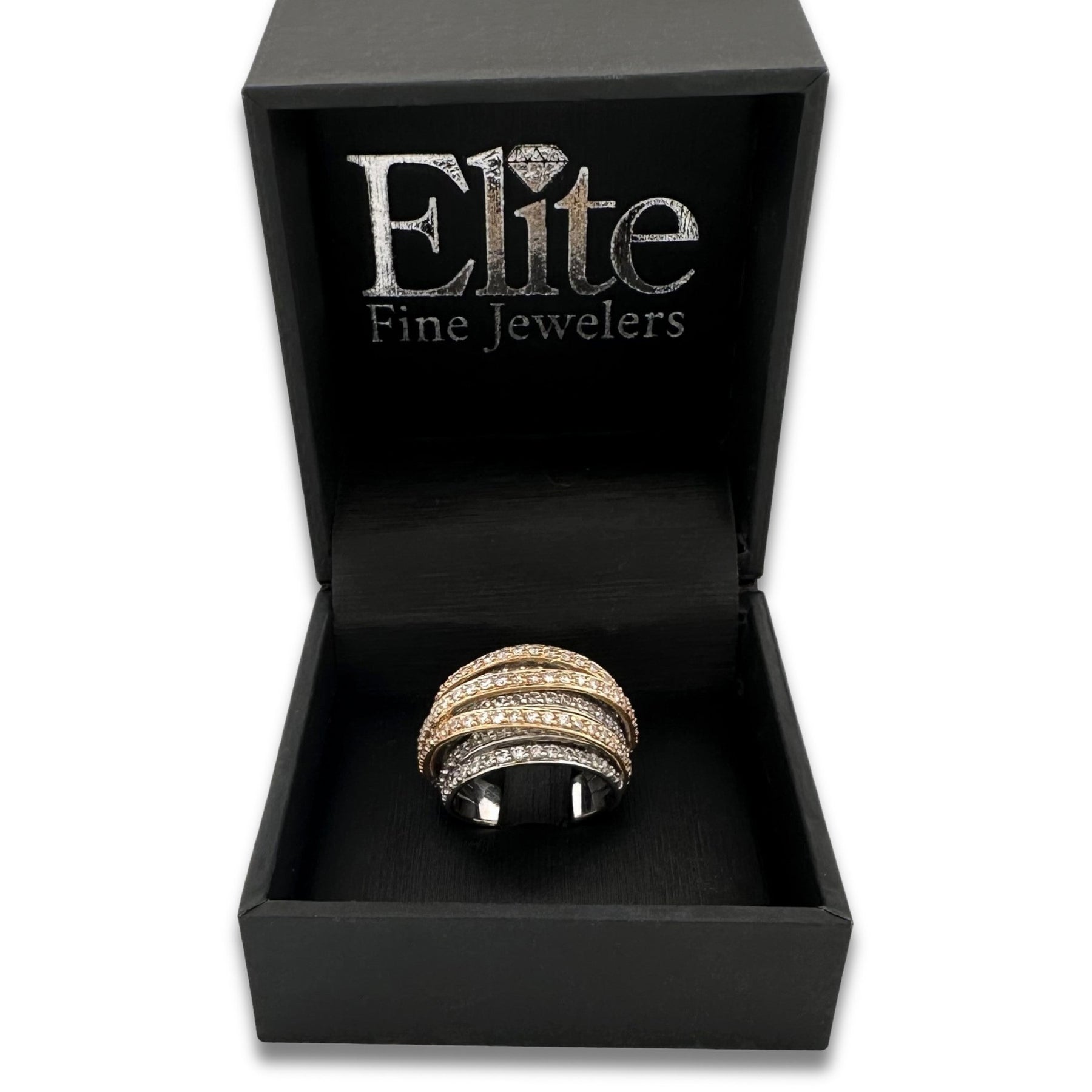 1.25ctw Round Brilliant Natural Diamond Multi-Row Cocktail Ring in 18k Two-Tone Gold