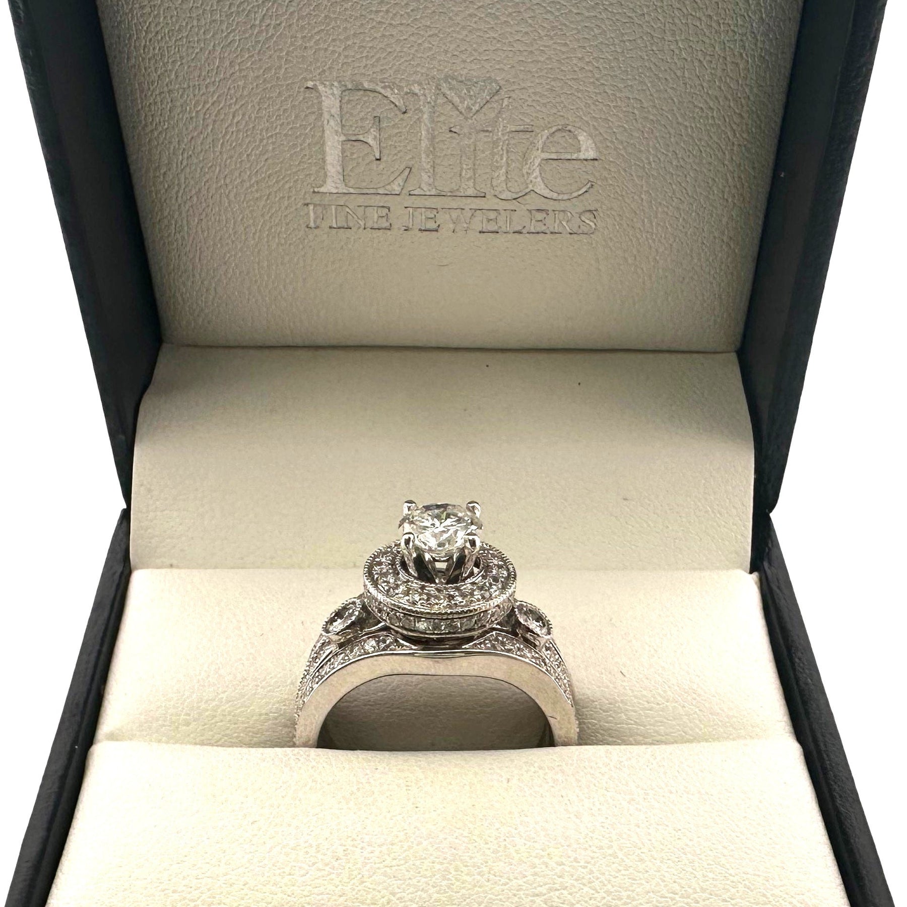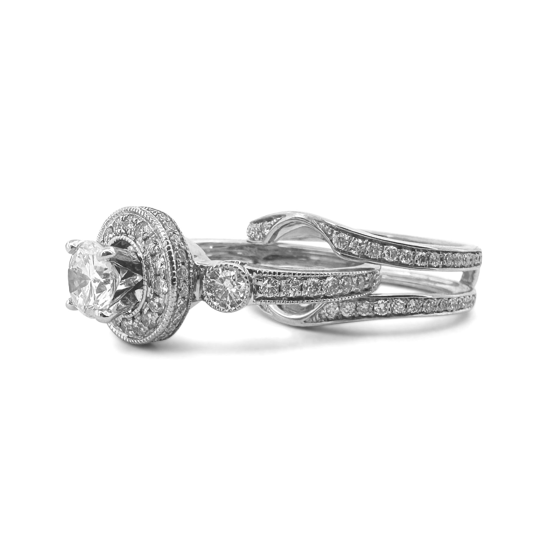 1.74ctw Round Brilliant Natural Diamond Engagement Ring & Jacket Wedding Set in 14k White Gold