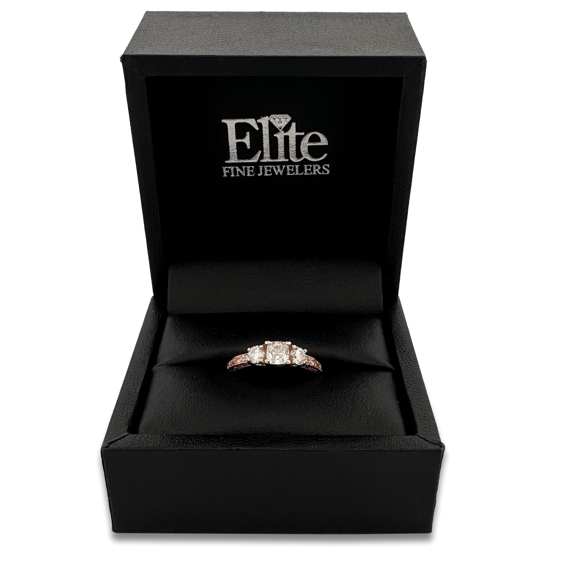 1ctw Cushion Cut & Round Brilliant Natural Diamond Engagement Ring in 14k Rose Gold