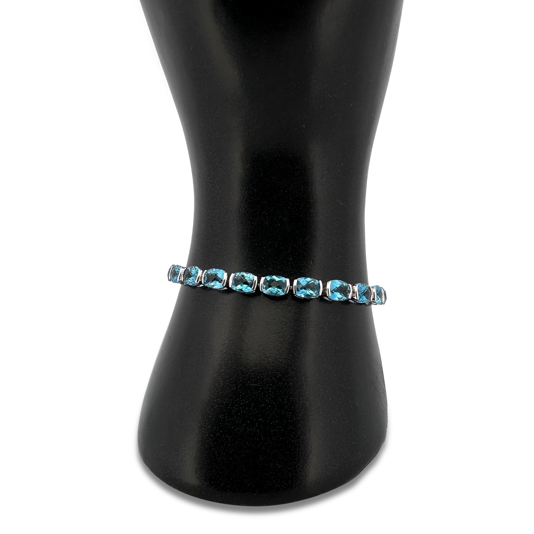 25ctw Cushion Cut Blue Topaz Link Bracelet in 14k White Gold