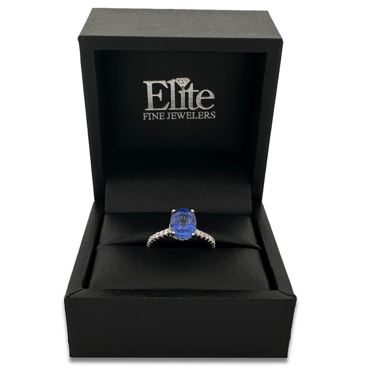 3.19cts Oval Blue Sapphire & Round Brilliant Diamond Hidden Halo Cocktail Ring in 18k White Gold