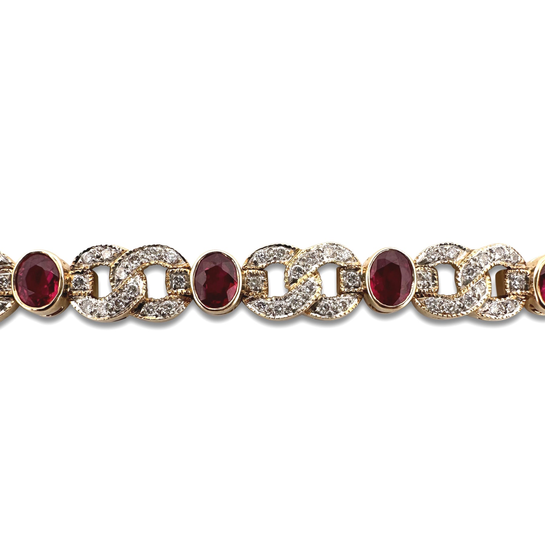 7ctw Oval Ruby and Natural Diamond Link Bracelet in 18k Yellow Gold