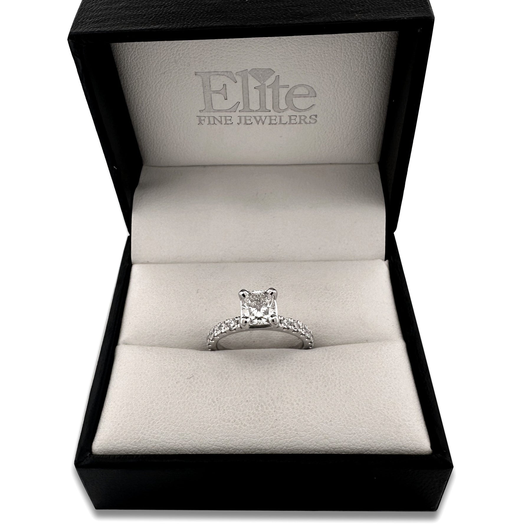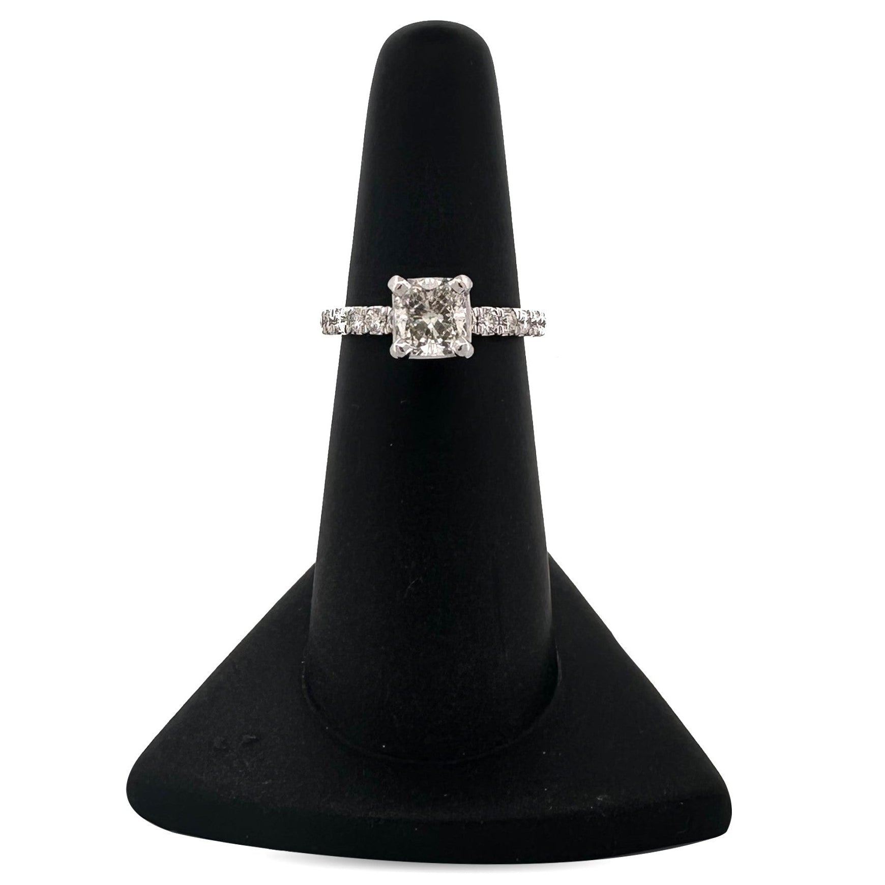GIA Graded 1.35ctw Cushion Cut with Round Brilliant Natural Diamond Engagement Ring in 14k White Gold
