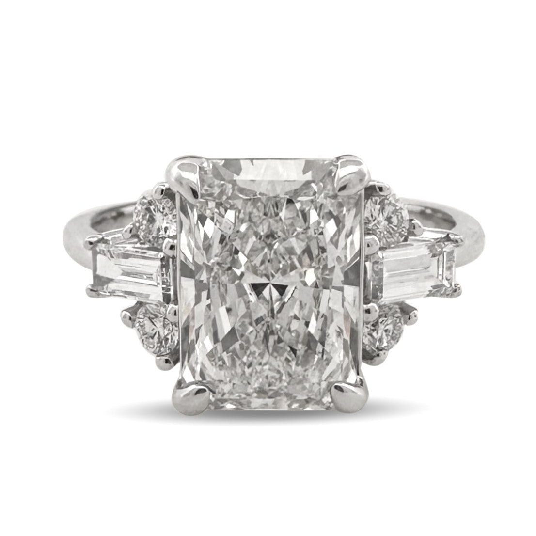 IGI Graded 2.76ct Radiant Cut Center with Baguette & Round Lab-Grown Diamond Engagement Ring 14k White Gold