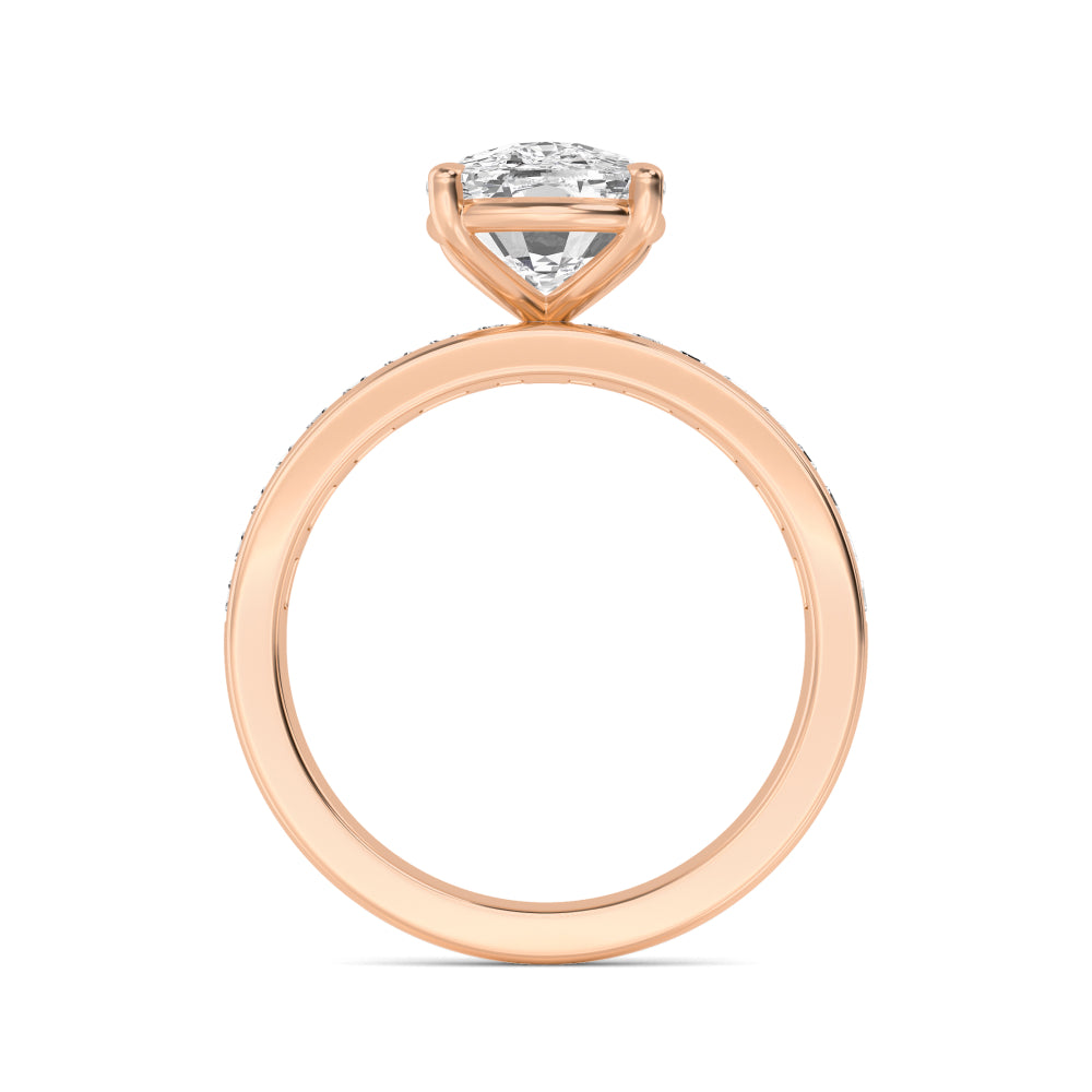 IGI Graded 3.09ct Cushion Cut with Baguettes Lab-Grown Diamond Engagement Ring in 14k Rose Gold