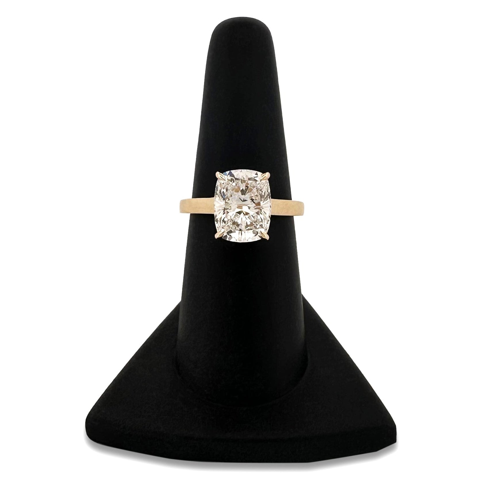 IGI Graded 4.09ct Cushion Cut with Round Brilliants Lab-Grown Diamond Engagement Ring in 14k Yellow Gold