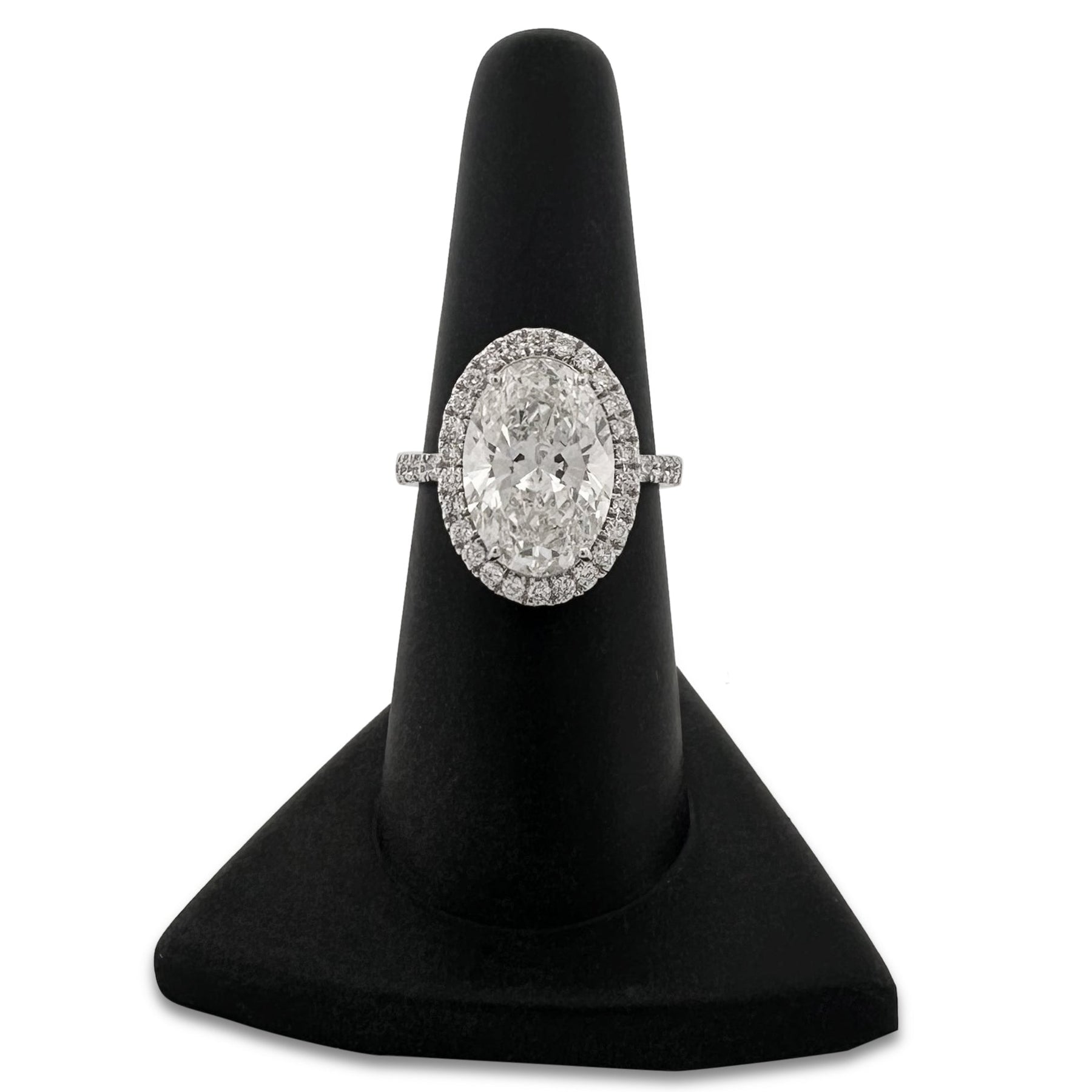 IGI Graded 5.05ct Oval Center with Round Brilliant Halo Lab-Grown Diamond Engagement Ring in 14k White Gold