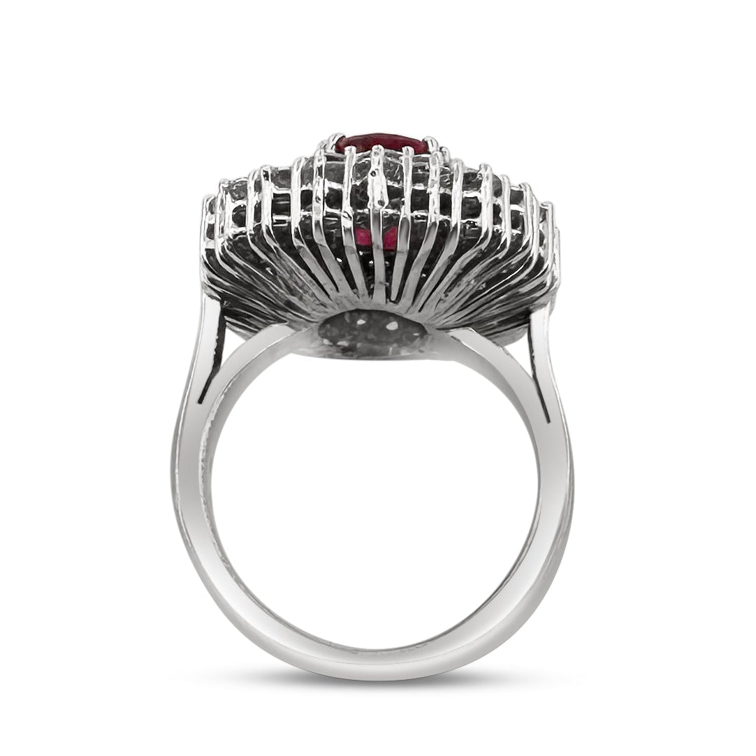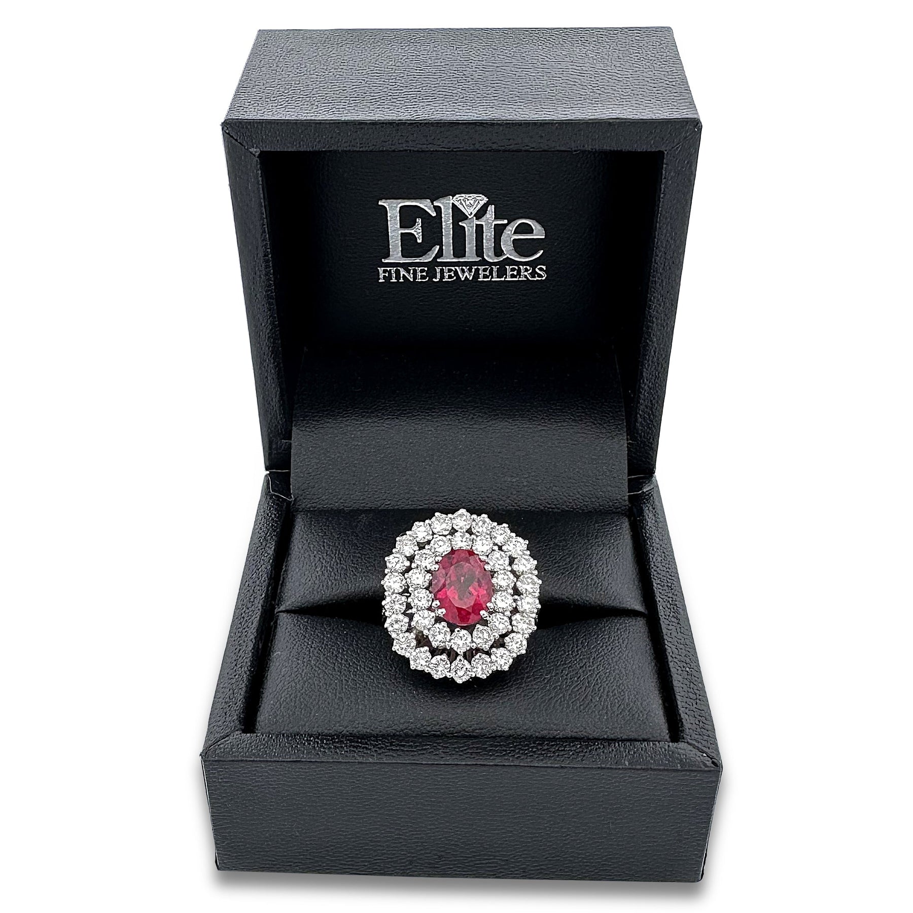 Oval Rubellite Tourmaline and Round Brilliant Natural Diamond Double Halo Cocktail Ring in 18k White Gold