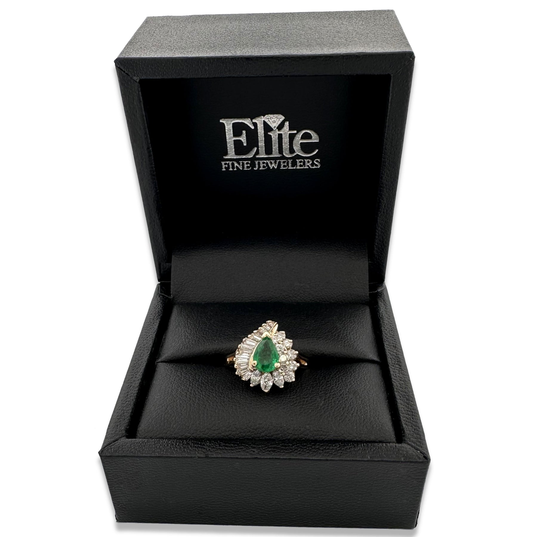 Pear Emerald and Natural Diamond Cocktail Ring in 14k Yellow Gold