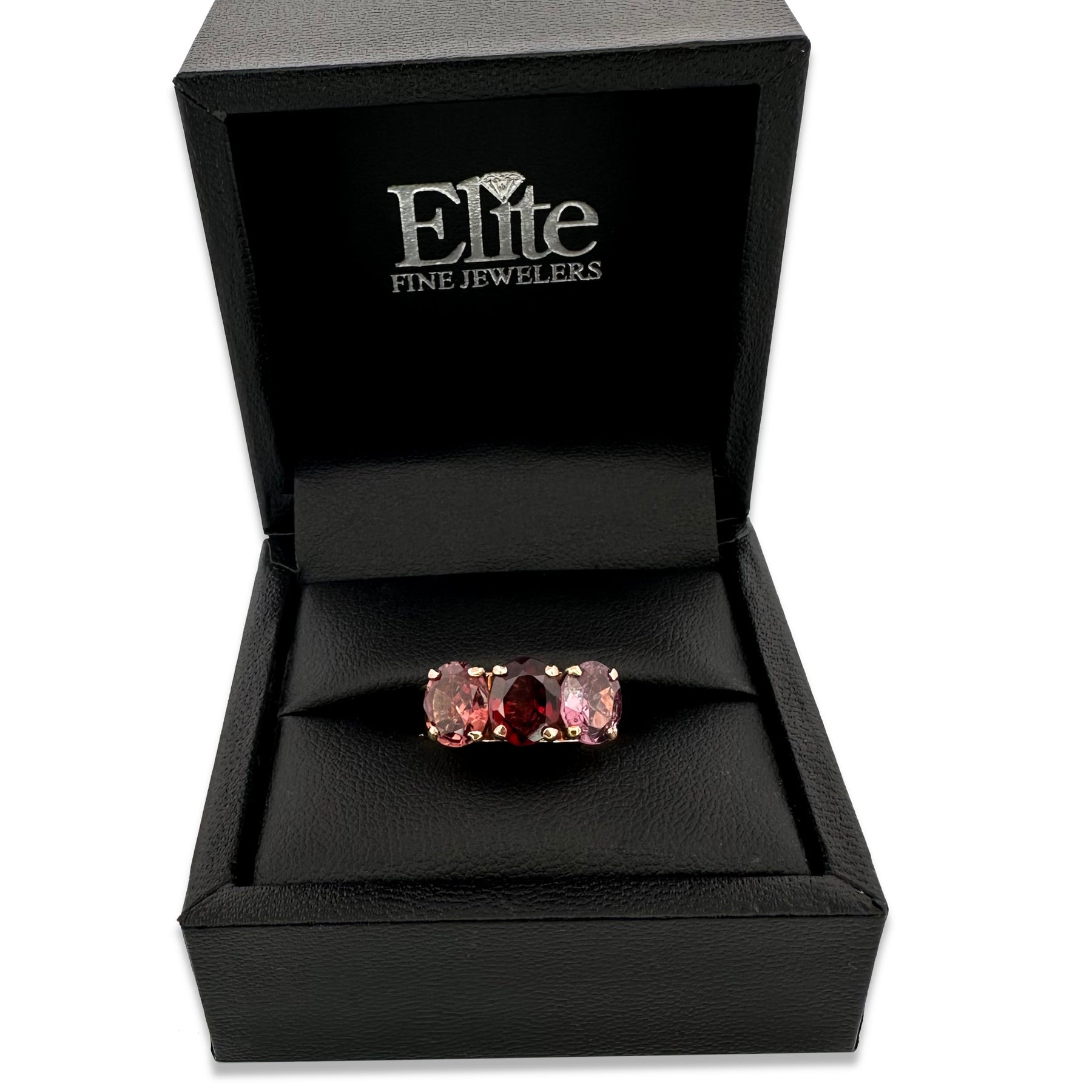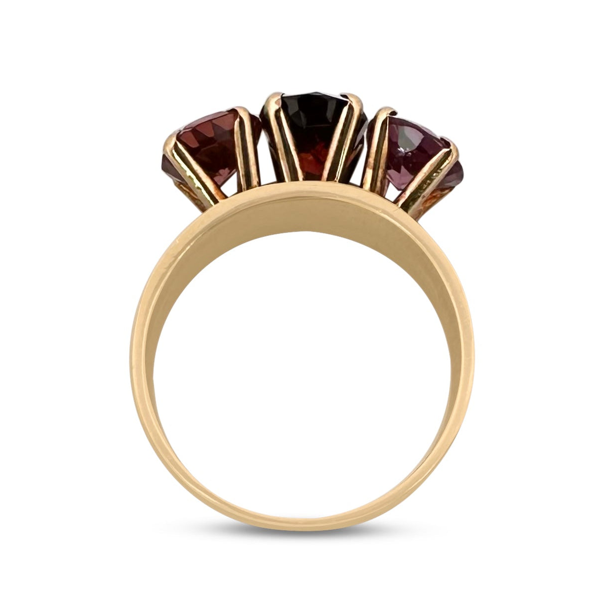 Pink, Red and Peach Oval Spinel 3-Stone Cocktail Ring in 14k Yellow Gold