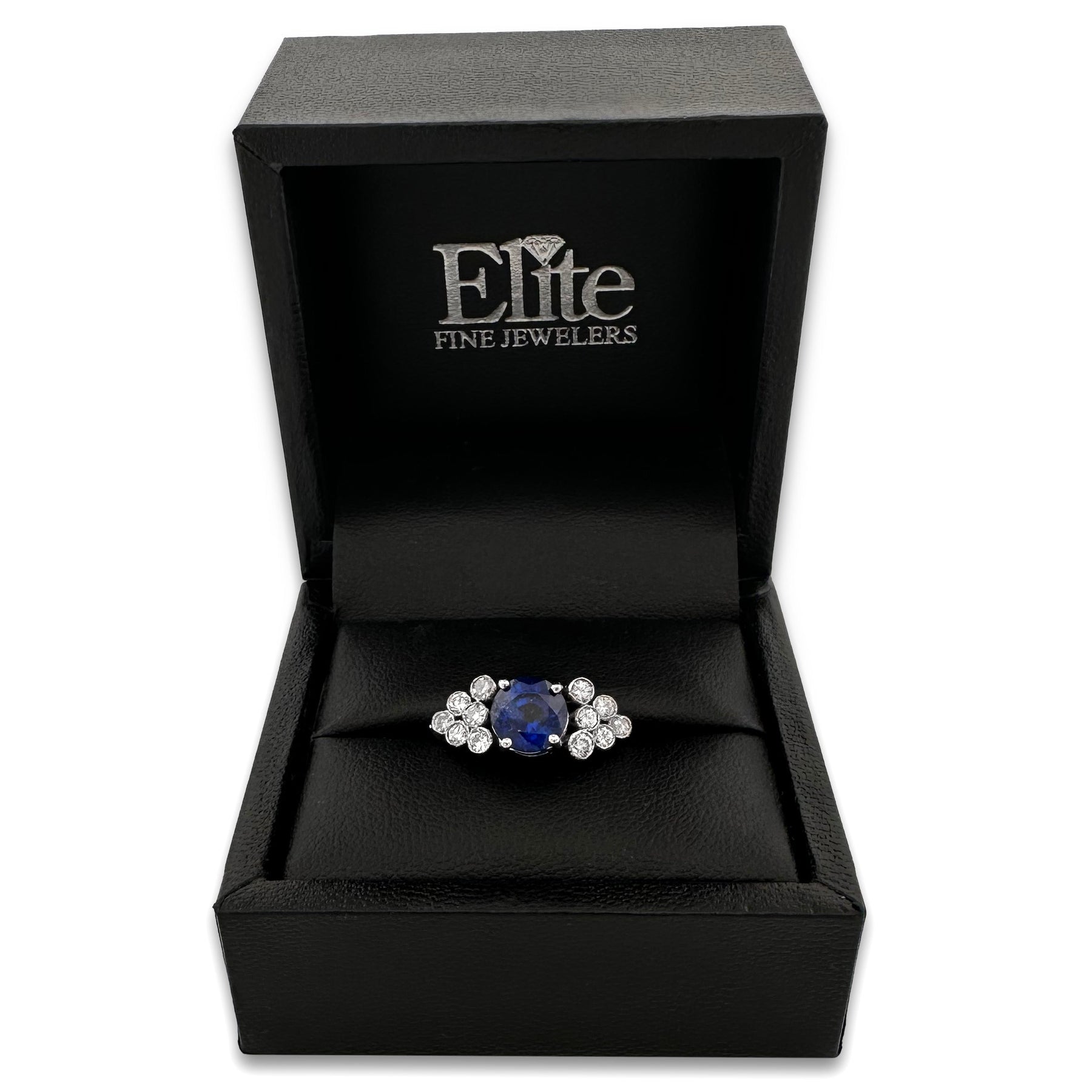 Round Blue Sapphire & Round Brilliant Natural Diamond Cocktail Ring in 18k White Gold