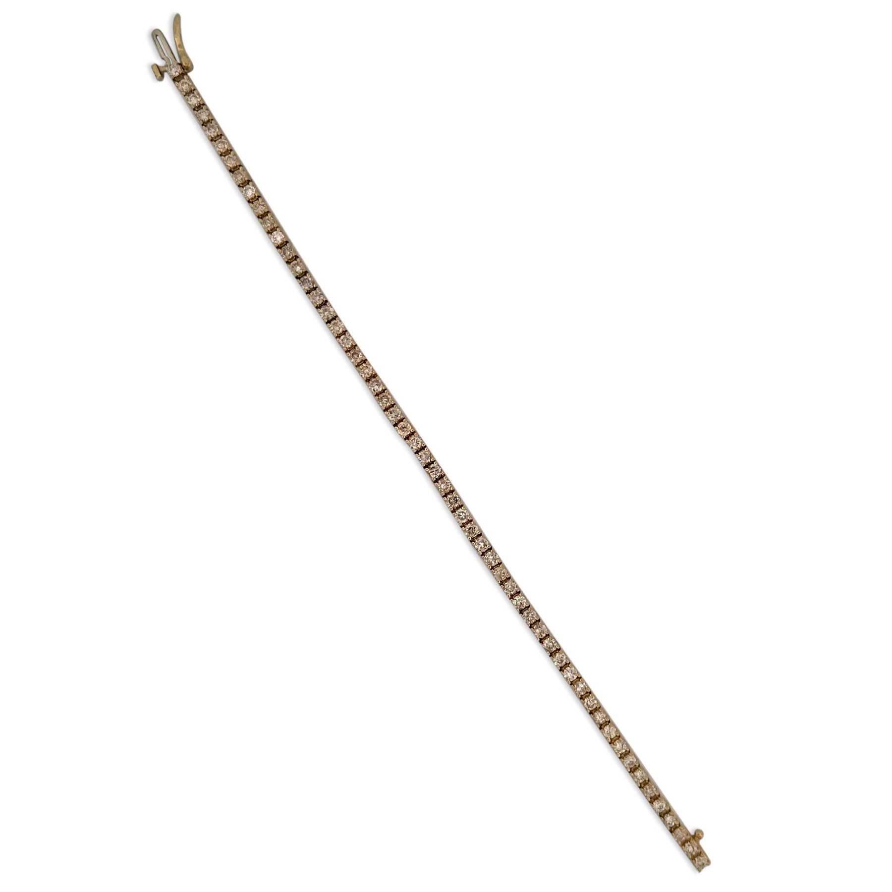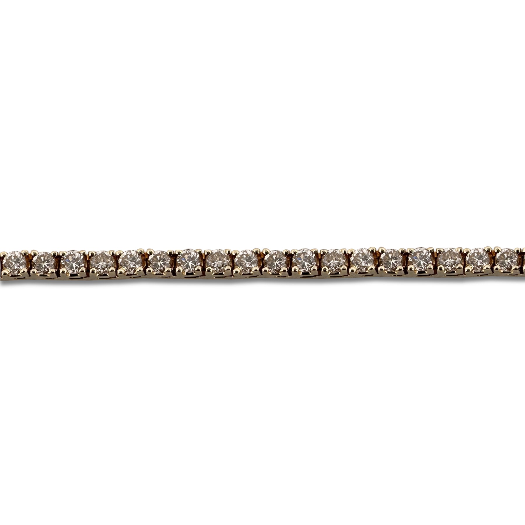 A timeless earth-mined diamond tennis bracelet. With over 3 1/2 carats of round brilliants, matched for color and clarity. Set in 14 karat yellow gold with classic 4-prong settings. You will want to wear this daily - alone or as part of your stack.