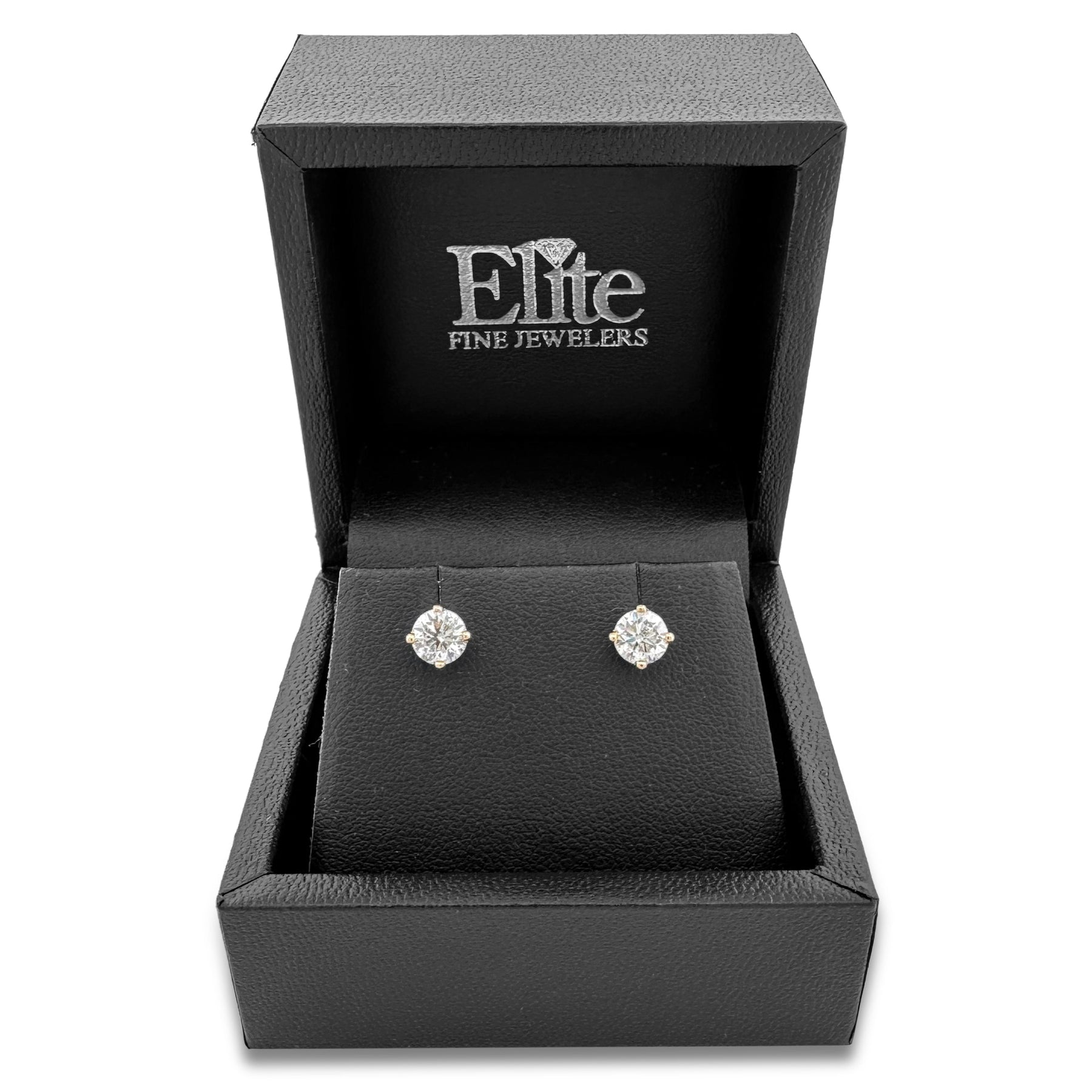 GSI Graded 1.23ctw Round Brilliant Natural Diamond Stud Earrings in 18k Yellow Gold