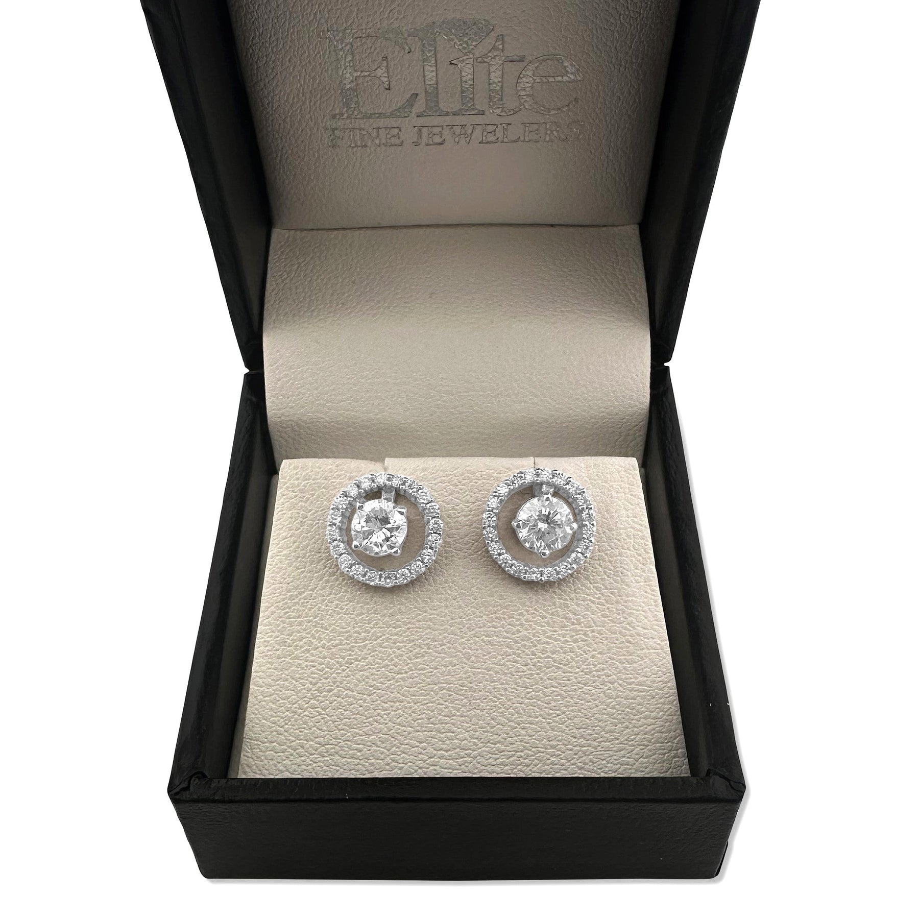 These convertible jackets allow you to wear your stud earrings 2 additional ways; simply put your studs through the center to create a halo earring, or flip the hinge up to create a drop dangle from your stud. A total of 0.31 carat of earth-mined diamonds are set in 14 karat white gold.