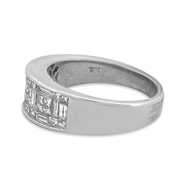 EGL Graded 0.98ctw Princess & Baguette Cut Natural Diamond Band in 18k White Gold