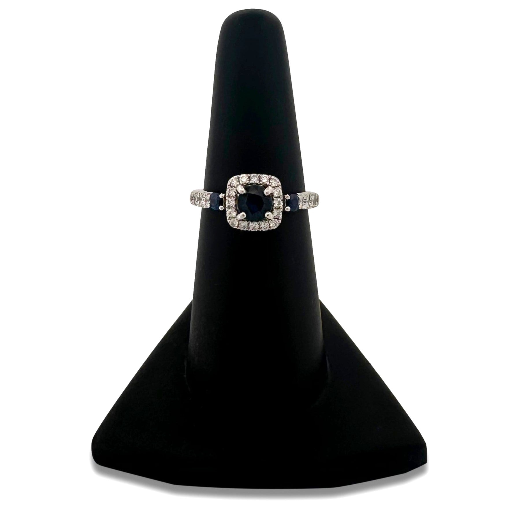 Round Blue Sapphire & Round Brilliant Natural Diamond Halo Engagement Ring in 14k White Gold by Vera Wang