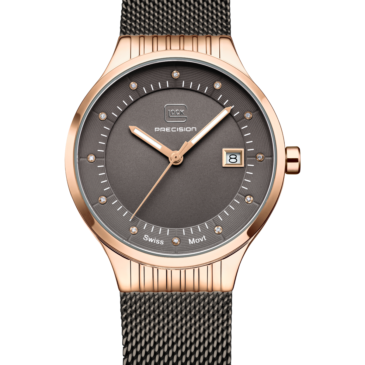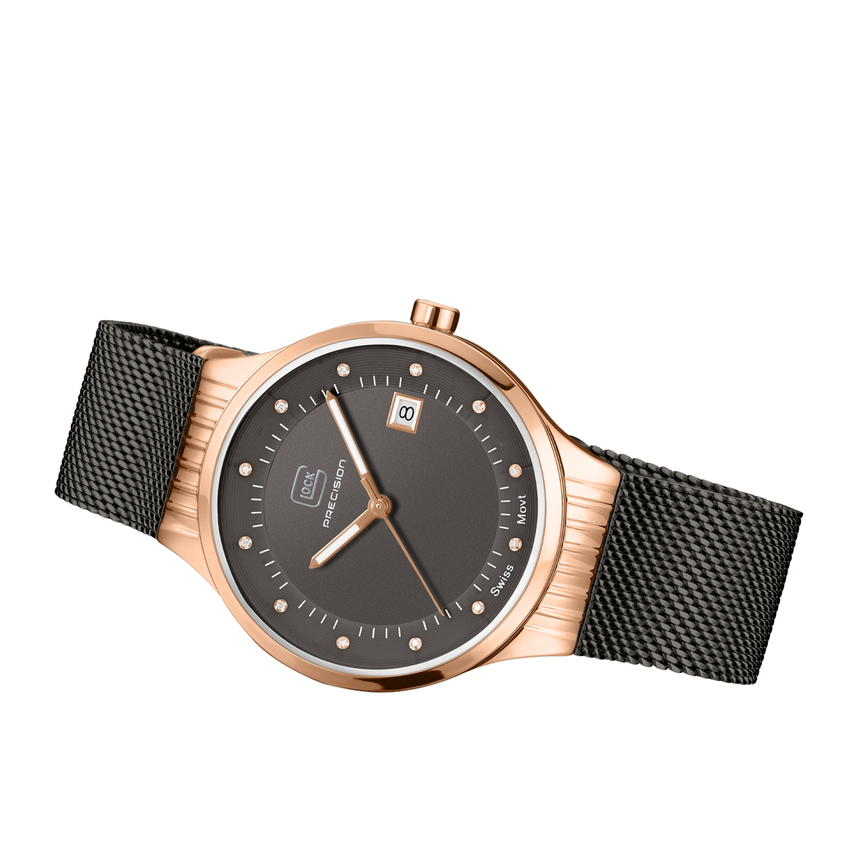 GLOCK GW-28-2-18 35mm Rose & Gunmetal-Tone Stainless Steel Watch with Diamond Markers