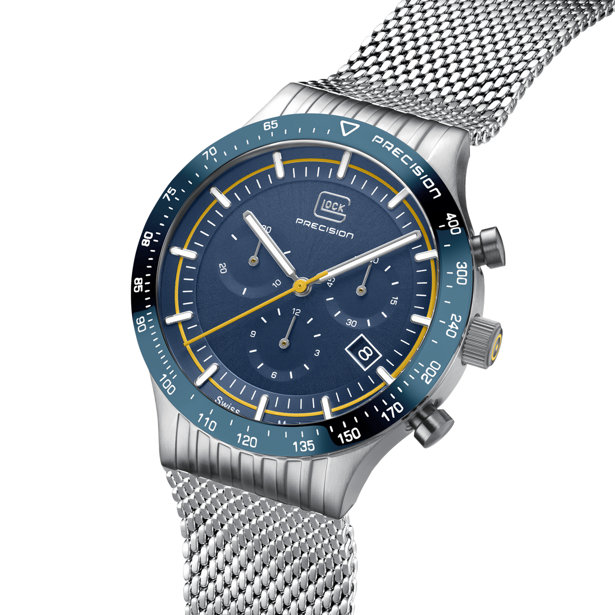 GLOCK GW-34-3-24 43mm Stainless Steel Quartz Chronograph Mesh Bracelet Watch