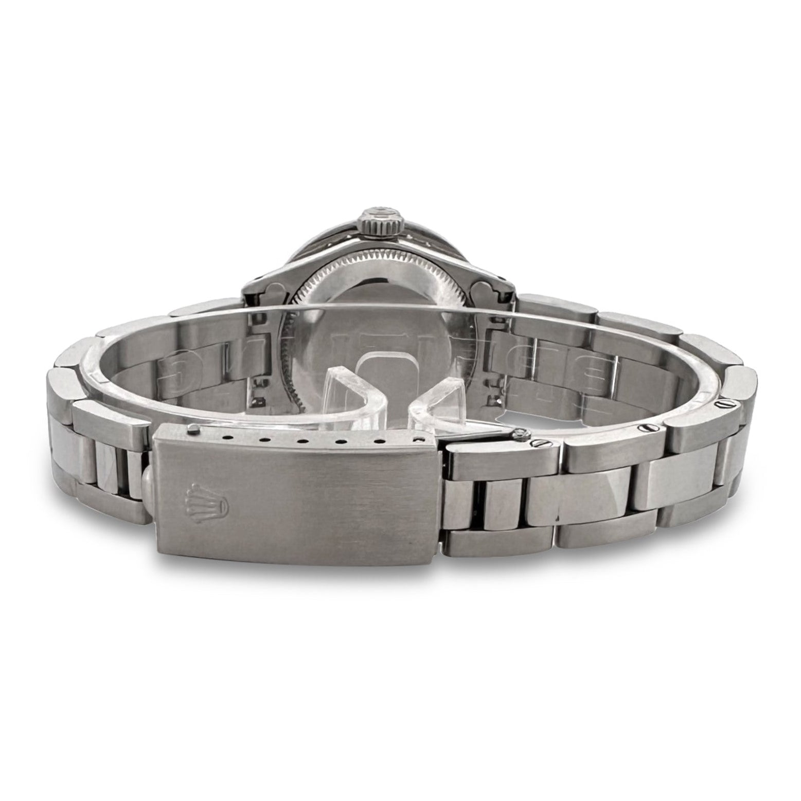 Pre-owned woman's Rolex Datejust watch. Featuring a mesmerizing blue dial with diamond markers and a blingy diamond bezel. The dial, bezel and bracelet are all aftermarket upgrades. The watch is in very good condition; minor scratches. This watch does not come with its original box or original paperwork.